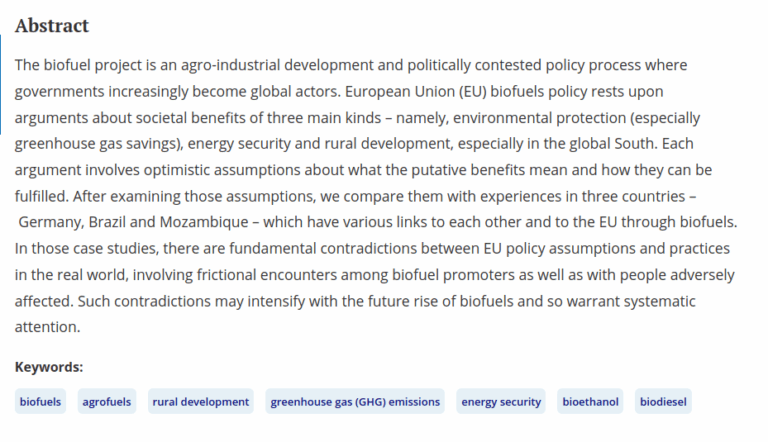 Assumptions in the European Union biofuels policy: frictions with experiences in Germany, Brazil and Mozambique