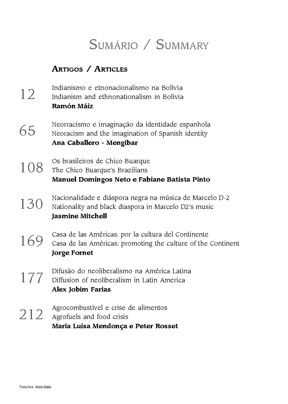 Mendonça, Maria Luisa e Rosset, Peter. Agrofuels, food sovereignty, and the contemporary food crisis. Revista Tensões Mundiais n.8.