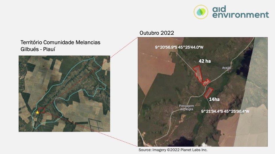 The Melancias territory is in an advanced process of titling, with an anthropological report carried out in 2018 and published in the official gazette of Piauí in August 2022. Deforestation is taking place within the area already recognized by the State as an area of traditional, ‘brejeira (riverside) community’, as indicated by a map prepared by AidEnvironment .