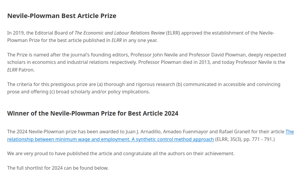 The Prize is named after the journal’s founding editors, Professor John Nevile and Professor David Plowman, deeply respected scholars in economics and industrial relations respectively. Professor Plowman died in 2013, and today Professor Nevile is the ELRR Patron.