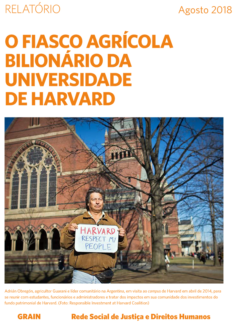 Novo relatório da GRAIN e da Rede Social de Justiça e Direitos Humanos apresenta uma análise abrangente e inédita dos investimentos polêmicos da Universidade de Harvard na compra, em escala global, de terras agrícolas.
