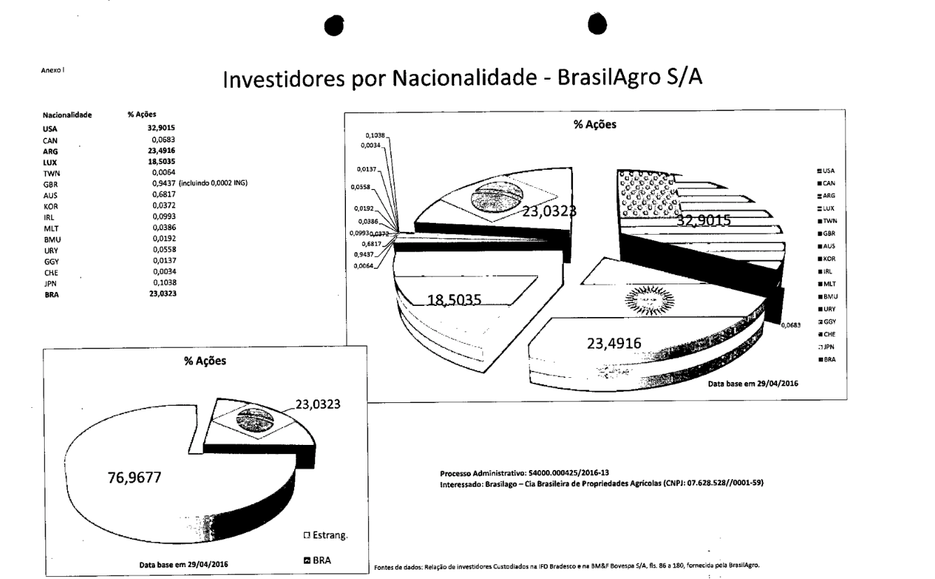 What the federal land agency discovered was that every share traded on the stock market in Brazil or abroad corresponded to a vote in BrasilAgro’s general assemblies. “One can conclude that whoever holds the highest number of shares is the one that has the real decision-making power in the company,” it said in an official document.